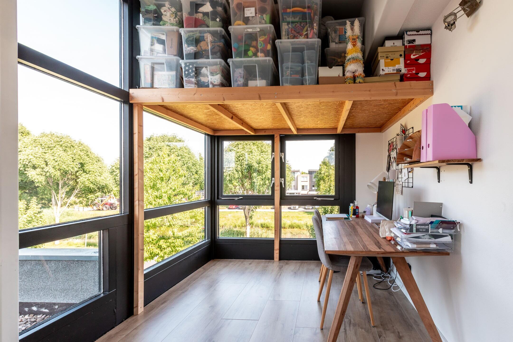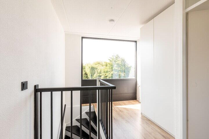 Tweede verdieping: Ruime overloop met toegang tot de separate ruimte met de witgoedaansluitingen; vierde slaapkamer van 13,6m² met een fantastisch uitzicht over een groot deel van de Landstrekenwijk.